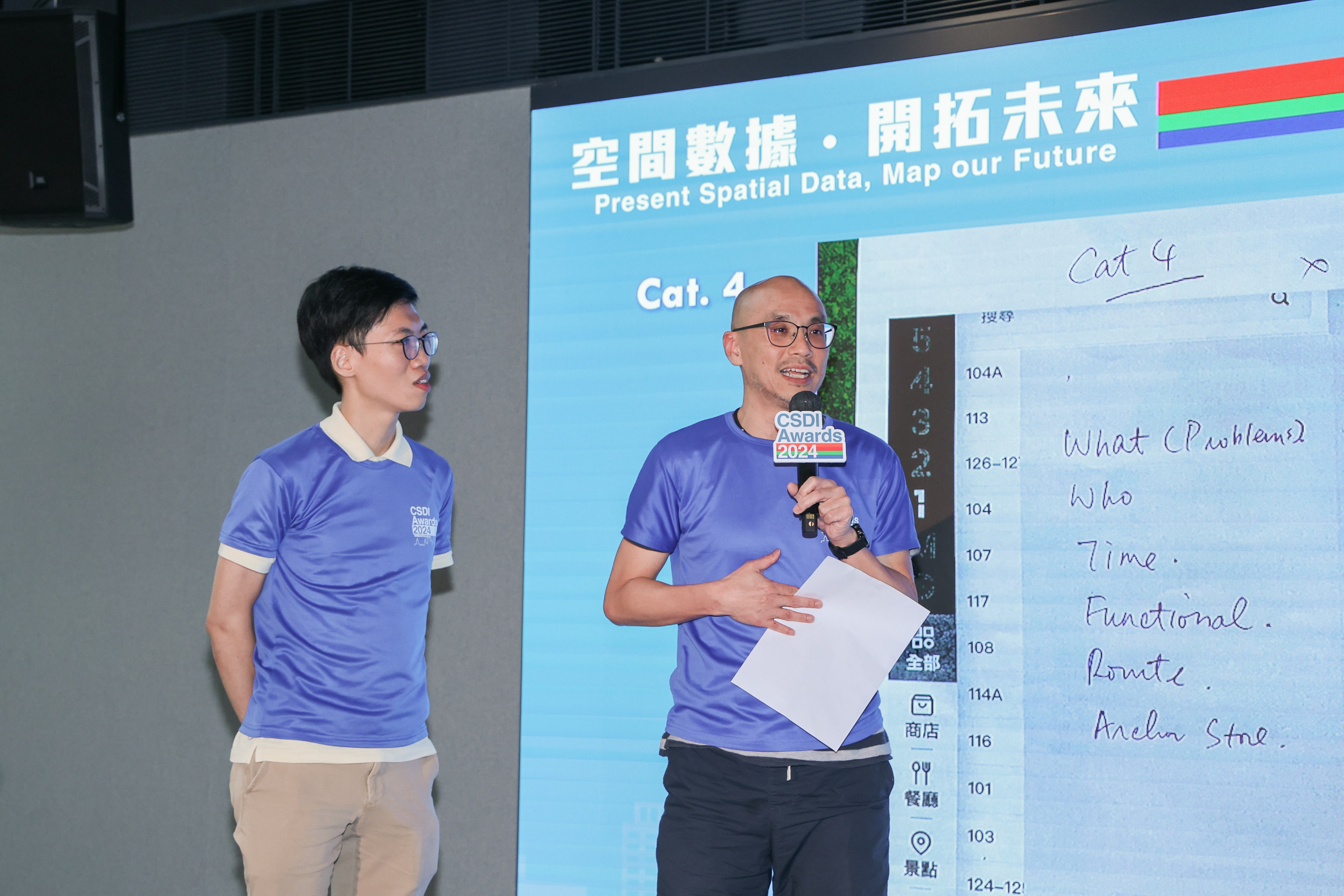 To promote CSDI and to raise the public’s interest in spatial data, Geospatial Lab, established by the Development Bureau, is organising the CSDI Awards 2024 – “Present Spatial Data, Map our Future” (the “Awards”). The Awards is aimed to encourage students and the public to creatively use spatial data to address challenges we faced in the city. The competition attracted over 160 teams to participate, with a total of nearly 500 participants.